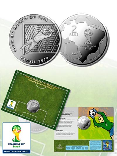 As seis moedas de cuproníquel têm valor cunhado de R$ 2 e peso de 10,17 gramas, ao custo de R$ 30 cada. Elas compõem a série Jogadas de Futebol, com lances típicos como a defesa do goleiro, a cabeçada, a "matada" de bola no peito, o passe, o drible e o gol.