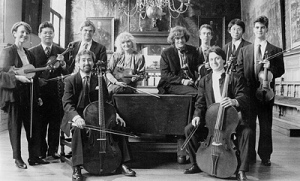 Na foto (divulga??o Pr?-M?sica), a Orquestra La Petite Bande, fundada por Sigiswald (sexto da esq. para a dir.). Entre os membros da orquestra, Lu?s Ot?vio Santos, Diretor Art?stico do Festival Internacional de M?sica Colonial Brasileira e M?sica Antiga (?ltimo ? direita). |