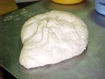 ?leo e coloque a massa (que ? bem el?stica e grudenta), parta em dois