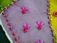 Quem ensina o bordado de margarida com mi?angas ? Ta?s Aparecida Aguiar Vieira (foto acima), de 15 anos, que faz parte do projeto Casa da Menina Artes?, da Amac (a coordenadora do projeto fala sobre o Casa no v?deo acima) h? cerca de sete meses. Quem for customizar uma pe?a masculina, pode fazer o mesmo bordado na cor que desejar e sem a mi?anga (veja o passo-a-passo).