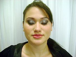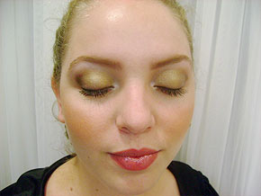 A dica de Liriana para mulheres loiras ? usar uma sombra dourada e marrom. A partir da?, o tom dos outros produtos - blush e batom - tamb?m vai puxar para o marrom. A modelo de pela morena recebeu uma maquiagem mais carregada, j? que Liriana abusou da combina??o de sombra preta e prata. Sendo assim, o batom e o blush foram aplicados de forma mais discreta.