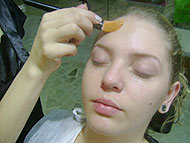 depois, um t?nico para fechar os poros e remover as c?lulas mortas. O pr?ximo passo ? aplicar um fluido matificante. Ele absorve a oleosidade, fixando a maquiagem por mais tempo. "Com essa prepara??o, a maquiagem fica bonita at? o fim da festa."