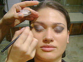 em toda a p?lpebra. A cor mais clara ? aplicada primeiro, na parte interna, e a escura ? colocada por fora. O que vai definir se a maquiagem vai ficar mais suave ou mais carregada