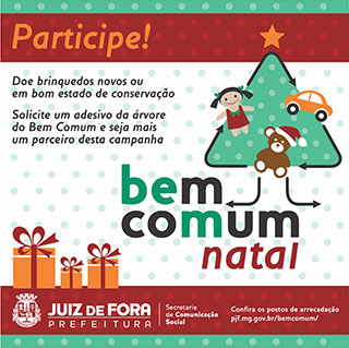 Já a Secretaria de Comunicação Social (SCS) da Prefeitura de Juiz de Fora (PJF) lançou a campanha "Natal Bem Comum", visando arrecadar brinquedos, novos ou em bom estado de conservação, que serão destinados às crianças atendidas por instituições assistidas pela Secretaria de Desenvolvimento Social (SDS).