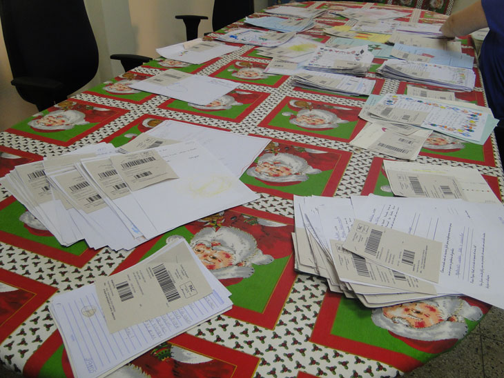 Os Correios de Juiz de Fora inauguraram na manhã desta quinta-feira, 12 de novembro, o serviço de apadrinhamento de cartas escritas por crianças de escolas públicas municipais para o Natal de 2016. A ação busca tornar o Natal dessas crianças, muitas em situação de vulnerabilidade social, melhor. "No ano passado, conseguimos o apadrinhamento de quase dez mil cartas. Esse ano, também pretendemos ter esse número. Até o momento, já temos sete mil cartas e outras para serem cadastradas", explica Maria do Carmo Lopes, coordenadora da campanha Papai Noel dos Correios em Juiz de Fora e Zona da Mata.