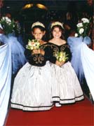 Geralmente as damas de honra e os pajens usam roupas alugadas, j? que, ao contr?rio da noiva elas n?o v?o precisar da roupa de recorda??o.