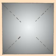 Est? na hora de montarmos nosso cata-vento! Pegue uma ponta do tri?ngulo e leve at? o meio do quadrado. N?o precisa de dobrar! Fixe com a cola. Fa?a isso com uma ponta de cada tri?ngulo alternadamente.