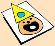 Em uma cartolina maior, desenhe o rosto, marcando o lugar da boca. Em outro peda?o de papel, desenhe o chap?u. Recorte as figuras. Desenhe no rosto os olhos e o nariz.