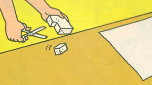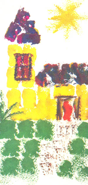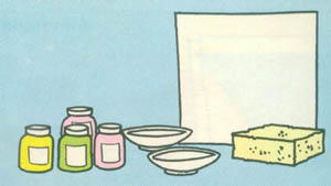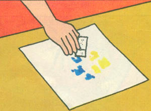 ![]() | Agora, coloque a esponja no pratinho e depois a pressione no papel. Olha s?, a pintura ficou com o formato da esponja, como se fosse um carimbo! |
