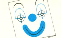 ![]() | Pinte e enfeite com pap?is coloridos, colocando chap?u, cabelo, gravata, cortorno da boca de palha?o e bochechas rosadas. |