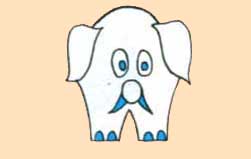 Pinte primeiro os olhos e as presas. Depois pinte o resto do corpo do elefante.