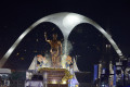 Segure o c?rculo de tecido pelo meio e mergulhe na mistura de gesso. Coloque o tecido molhado sobre a garrafa e aperte as pregas com cuidado