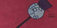 Prenda uma bola de jornal, bem compacta, na ponta da vareta. Prenda com fita adesiva as pontas do papel. Depois, cole em cima da bola a tampa da garrafa