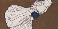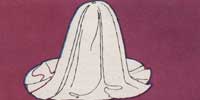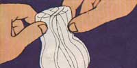 Segure o c?rculo de tecido pelo meio e mergulhe na mistura de gesso. Coloque o tecido molhado sobre a garrafa e aperte as pregas com cuidado