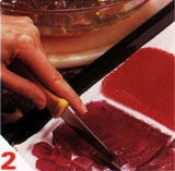Depois de gelada corte em quadradinhos de tamanhos iguais. Fa?a a mesma coisa com