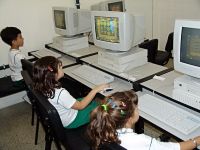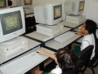 laborat?rio, eles aprendem a mexer no mouse, nos teclados