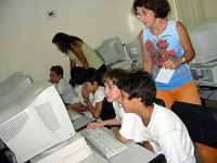 "S?o atividades mais r?pidas, devido ? concentra??o das crian?as. No geral, aqui na escola, a crian?a de 4, 5 anos est? acostumada com CD-ROM, mas n?o com a intera??o de joguinhos no meio de hist?rias. Mostramos, por exemplo, um jogo de mem?ria no datashow e eles apontam na tela. Isso acostuma a crian?a para, no outro per?odo, ter contato com o computador no laborat?rio", diz.