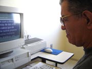 Jos? do Carmos Reis (foto ao lado), interno na Associa??o dos Cegos, conhece o sistema, mas diz que n?o ? poss?vel ter contato com o DOSVOX, porque os computadores da Associa??o n?o suportam o sistema.