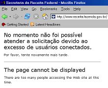 congestionamento de sites que esperam grande n?mero de inscri?es ou