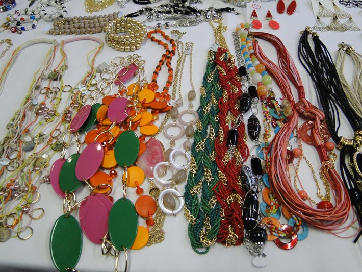 Roupas, bijuterias, objetos de decoração, móveis e bolsas são algumas das opções encontradas
