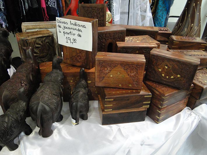Entre as opções estão roupas; bijuterias; objetos de decoração; móveis; produtos de cama, mesa e banho; bolsas; sais de banho e quadros. Com preços bem atrativos, como revela um dos organizadores da feira, o artesão Nelson Júnior. "Temos produtos para todos os gostos e bolsos, com preços a partir de R$ 5. Garanto que quem visitar a feira irá encontrar algo que seja a cara de sua mãe."