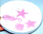 incolor e coloque algumas gotas de corante rosa. Mexa para misturar. 2. Coloque a mistura na forma de silicone com motivos marinhos. Preencha seis motivos ? sua escolha. 3. Deixe endurecer por cerca de 30 minutos |
