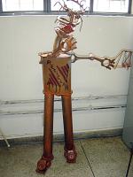 A maioria das pe?as s?o feitas com materiais simples, como canudinhos de papel de jornal, tinta e verniz. Alguns, s?o de sucata (a?o, parafusos, latas e molas), e outras, de garrafas de refrigerante. "? incr?vel como esses materiais podem ser reaproveitados e como fica bonito o resultado final. Ningu?m imagina", orgulha-se a professora de arte, ?rika Rooke.