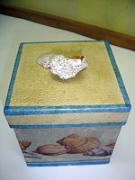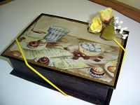 A artes? diz que adora trabalhar com pap?is, porque ? poss?vel fazer um trabalho interessante e com um pre?o bem acess?vel. "Este modelo de caixa fiz para uma cliente que vai coloc?-la no banheiro feminino de uma festa, para guardar lixa de unha, cotonete, absorvete... S? alertei para que ela deixasse a caixa em uma mesa separada para n?o molhar", explica.