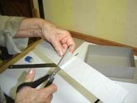 em cada papel?o cortado, um por vez. A parte interna da caixa ser? forrada