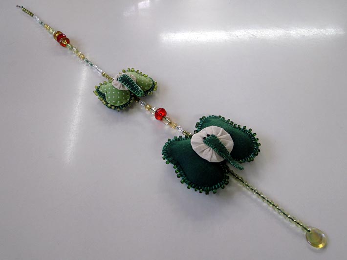 Que tal colocar um pouco de alegria e cor em sua casa ou ainda conseguir um dinheiro extra? A dica é um móbile confeccionado em tecido. Para montar a peça, vamos precisar de alfinetes, linha de costura, linha para bordado, tesoura, cola quente, pano americano cru, feltro colorido, pano estampado, uma pequena argola e miçangas.