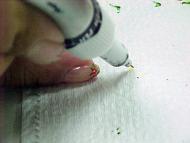 Depois de seco, pegue o palito e molhe levemente na tinta de tecido.
