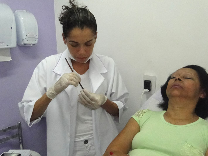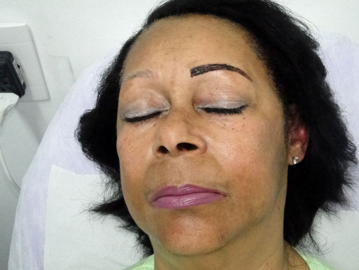 Para a modelo, o procedimento escolhido foi o de coloração dos pelos com tinha e design com lápis. Este processo foi o mais indicado, uma vez que Therezinha tem muitos pelos brancos e finos, "o que não realça no rosto, além de incomodar bastante", explica a esteticista. A coloração dura entre 30 a 60 dias."O tempo de duração depende do crescimento dos pelos, que com o passar do tempo vai clareando", esclarece a profissional.