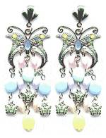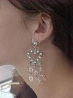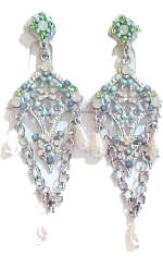 O tempo passou e at? hoje suas pe?as continuam fazendo sucesso. Os brincos-candelabro parecem pe?as sa?das de um pal?cio. Geralmente os brincos s?o formados por uma base de metal de diversos tons (que pode ter pedras incrustadas) e de uma cascata de cristais, resina, pedras... A base pode ter v?rios formatos: geom?tricos, de cora??o, flor, borboleta, aro. O comprimento da cascata tamb?m ? variado.