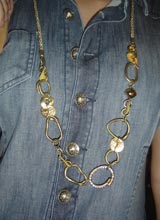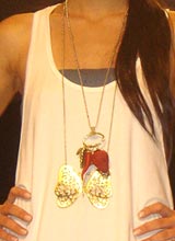 O ar de mulher guerreira tamb?m se reproduz nos acess?rios atrav?s de correntes largas, colares de pedraria e pulseiras de argola. Aten??o: neste ano, nada de mi?angas. Voc? pode usar uma ou v?rias correntes em um mesmo dia, sem se esquecer de que todas devem ser bem compridas, alcan?ando um palmo abaixo do peito.