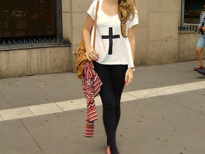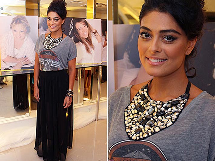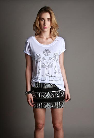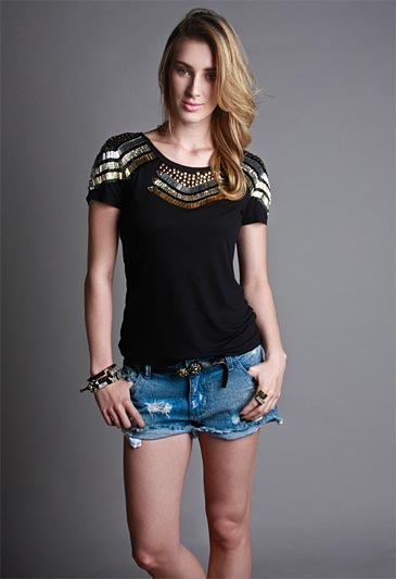 Para a noite, a t-shirt aparece mais customizada, com pedrarias e bordados diversos, capazes de agregar valor a qualquer produção. São elementos que podem ser aplicados manualmente em casa, bastando selecionar a blusa, as pedras ou elementos a gosto, tesoura e cola para tecido.