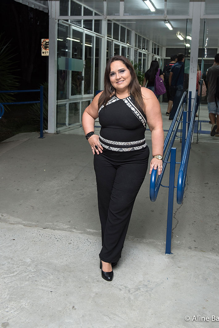 “Gosto muito de um vestido bem alinhado ao corpo e macacão é uma peça chave para qualquer ocasião. Cores escuras são as que predominam nos meus looks e que combinam mais comigo. A empresa exige um dress code mais formal, mas sempre monto meu look alinhado ao meu estilo e buscando me sentir confortável. Gosto de seguir as tendências para a estação e sempre procuro ler tutoriais de moda . Um look básico seja qual for, com um salto fica outra cara e a make complementa .”