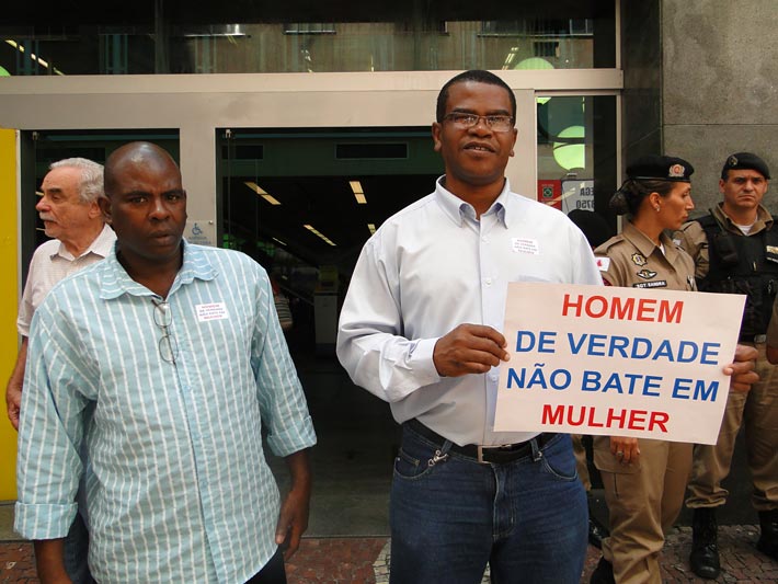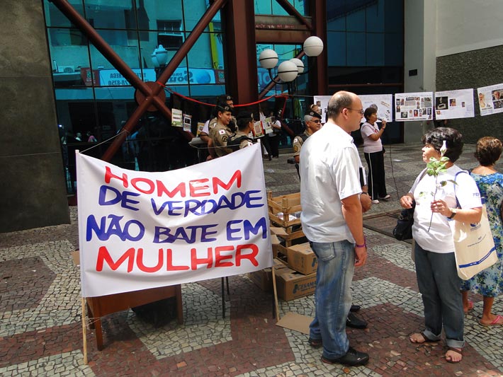 Os homens que passaram pelo local também realizaram a sua homenagem às mulheres ao tirar uma foto com uma placa que dizia: Homem de verdade não bate em mulher. Entre eles, estava o funcionário público Benedito Teófilo dos Santos. "O homem moderno é aquele que respeita e valoriza a mulher. Temos que dar valores às mulheres, afinal se não fosse elas, nós não estaríamos aqui."