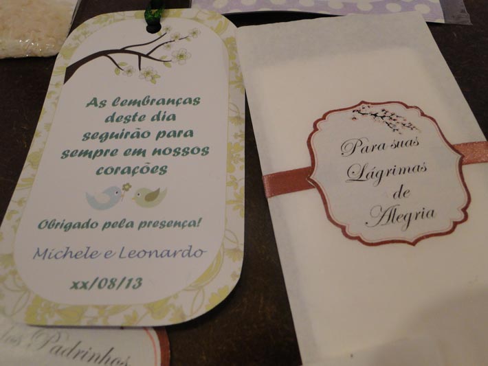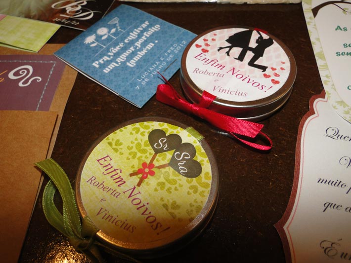 Além da variedade de comidas e bebidas, a decoração marca não só os noivos, como os convidados. Segundo a artesã Amanda Capute, a diversidade de produtos é cada vez mais crescente. "Muitos noivos optam por retribuir o carinho dos convidados com lembranças úteis e que ao mesmo tempo, marquem a data." Amanda, que confecciona uma variedade de produtos, desde convites até kit-presentes, avalia que a personificação também é um atrativo. "As pessoas querem que sua festa seja única e especial. E isso começa desde o convite artesanal e vai até uma lembrança que traga a figura dos noivos, por exemplo."