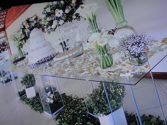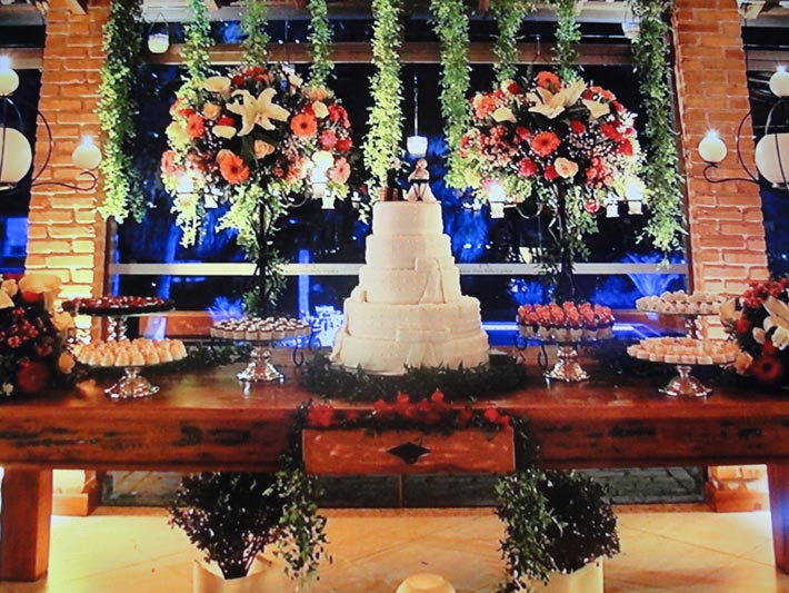Os enfeites também ocupam um lugar especial nesta celebração. Para a decoradora Simone Almeida, da empresa Silvana Feluti Decorações, as cores vermelho e branco são presenças na maioria dos casamentos, junto com cristais e velas. "A tendência do momento é fazer uma mistura destes objetos e cores." Sobre os valores, Simone explica que depende do tamanho e estrutura do ambiente. "Existem lugares que um simples arranjo já enfeita. Mas outros precisam de mais objetos. E, claro, o gosto de cada casal também é pessoal."