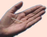 A cápsula de silicone flexível é implantada no braço da mulher, que deve ser submetida a uma anestesia local, porque o método é invasivo. O bastão (foto ao lado) de 4cm de comprimento e 0,2cm de diâmetro é colocado sob a pele, usando uma seringa própria, quatro dedos acima da dobra do cotovelo. Quem faz a aplicação é o próprio médico.
