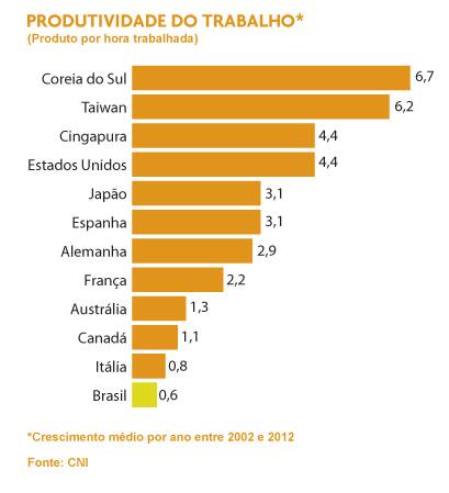 Essa figura mostra que temos uma das mais baixas produtividades da mão de obra, isso significa que o preço da mão de obra no Brasil é relativamente caro para a contrapartida do (não estamos dizendo que os salários são altos).