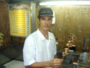 "Eu estou satisfeito ali. Pelo que eu tenho de instru??o, estudo, acho que n?o conseguiria coisa melhor. S? no dia que acontecer de a Prefeitura me mandar sair. Enquanto isso vou ficando ali, se Deus quiser at? aposentar", pensa o vendedor, seguindo a tradi??o da fam?lia, que h? 20 anos trabalha com churrasco na cidade. A primeira barraca foi na S?o Jo?o e, seu irm?o tamb?m tem um trailler de churrascos, que fica na Esp?rito Santo h? pelo menos 16 ou 18 anos. No mesmo local.