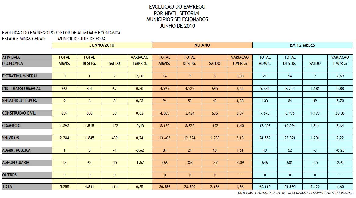 Mais uma vez o setor de serviços é responsável por manter o crescimento no número de empregos na cidade. O ramo criou 439 vagas em junho e ajudou para que o saldo total mensal ficasse positivo em 414. Indústria da transformação (62 novos postos) e construção civil (53 novas vagas) também contribuíram para o maior número de admissões em relação a desligamentos. No primeiro semestre, 2.186 novas vagas foram criadas em Juiz de Fora.