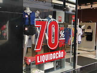 A empresária Ana Lúcia Esteves trabalha com acessórios. Para ela, foi fundamental realizar promoções neste período do Mundial. "Nos dias de jogos fechamos duas horas antes, isso fez com que nossas vendas diminuíssem muito." Na loja de Ana Lúcia, os descontos variam entre 10 e 50% do valor da peça. "Antecipamos a promoção. A princípio vou manter esse percentual. Talvez no fim de agosto esses valores possam aumentar e chegar a 70%. Assim, o cliente paga menos e eu esvazio meu estoque."