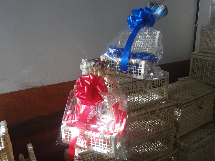 A proprietária Kátia Cristina Guimarães conta que vende as opções decoradas e as cruas separadas do material para decoração. "Tenho cestas pronta ou lisa, para quem optar por arrumá-la em casa. Não coloco preço da montagem, por isso acaba que os valores separados dos itens somam o custo de uma cesta decorada", afirma. Caso a pessoa queria comprar os materiais separados, o metro da fita de tecido é R$ 0,80 e de plástico R$ 0,50, o papel de seda R$ 0,50, o laço mágico R$ 1 e o saco de celofane personalizado R$ 2.