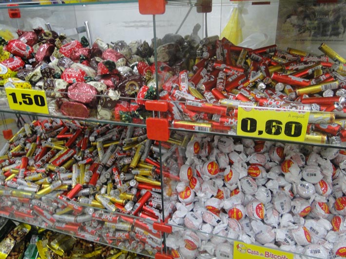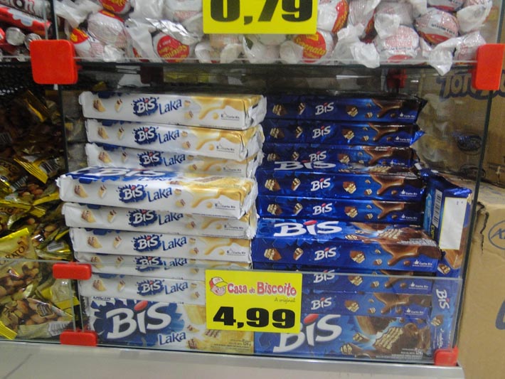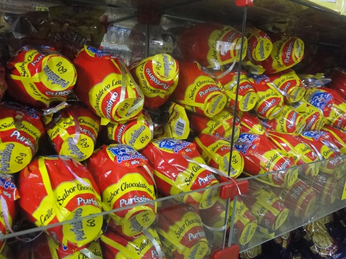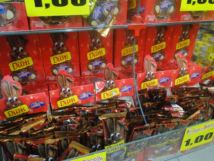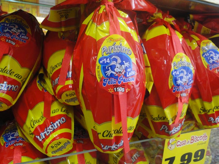 Caixas de BIS R$ 4,99 Bombons e trufas entre R$ 0,60 e R$ 1,50 Pão de mel com 8 unid R$ 4,79 Chocolate formato coelho 18g R$ 1 Achocolatado 200ml R$ 1,89 Cookies de chocolate 40g R$ 1,89 Ovo de chocolate ao leite 150g R$ 7,99 Barras de chocolate 130g R$ 3,99 Ovo de chocolate ao leite 60g R$ 3,99