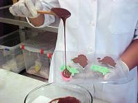 O primeiro passo para modelar seu chocolate come?a na hora da compra. O dono de uma f?brica de chocolate de Juiz de Fora, Rubens Kayamb?, j? avisa que marca de chocolate n?o ? muito importante. "Voc? tem que saber que crian?a gosta de chocolate doce, ent?o, vai usar o chocolate ao leite, porque paladar ? tudo".