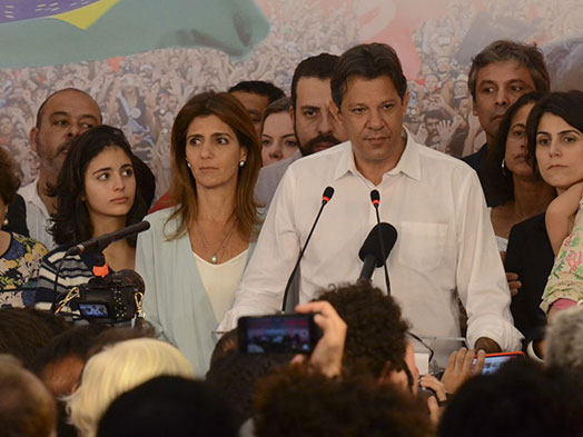 Recebido entre palmas de correligionários, lideranças de PT, PROS, PCdoB, PSOL e movimentos sociais, o candidato derrotado à presidente da República, Fernando Haddad, agradeceu na noite deste domingo, os 46 milhões de votos no segundo turno das eleições.