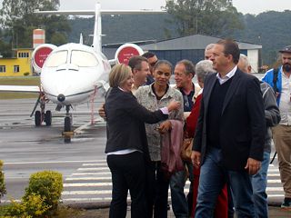 Com o discurso de mudança no formato da política no país e fortalecimento regional, a candidatura de Eduardo Campos e Marina Silva (PSB) desembarcou neste sábado, 26 de julho, no aeroporto da Serrinha em Juiz de Fora. Acompanhados do candidato ao governo do estado, Tarcísio Delgado, os presidenciáveis destacaram a necessidade de combater a formação de alianças que comprometem a execução de um projeto político eficiente.