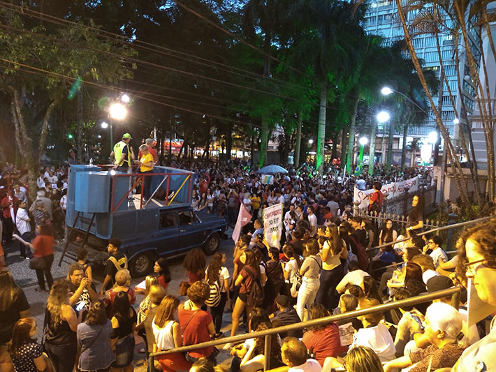 Um ato em defesa da educação acontece nesta quinta-feira, 30 de junho, no Centro de Juiz de Fora. A manifestação tem como objetivo principal a defesa da educação e da universidade pública e foi convocada por sindicatos, movimentos sociais e estudantis. Eventos foram publicados nas redes sociais pelo Diretório Central dos Estudantes (DCE) da Universidade Federal de Juiz de Fora (UFJF) e pela União Colegial de Minas Gerais (UCMG). Os estudantes se concentraram na Praça Cívica da UFJF, às 16h, e caminharam até o Parque Halfeld. Após as falas dos representantes no carro de som, os manifestantes vão sair em passeata pela região Central da cidade.